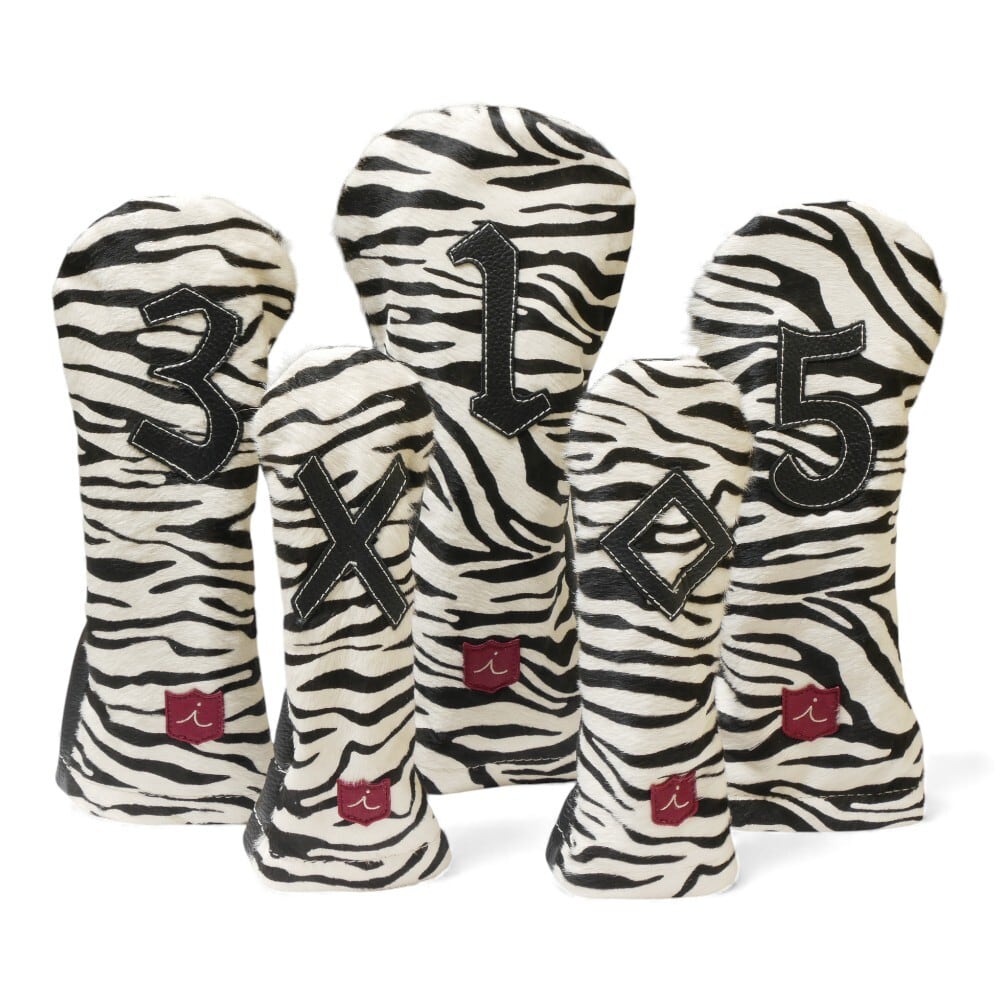ゼブラ柄のハラコ調牛革を使用した、ワイルドで個性的なヘッドカバー